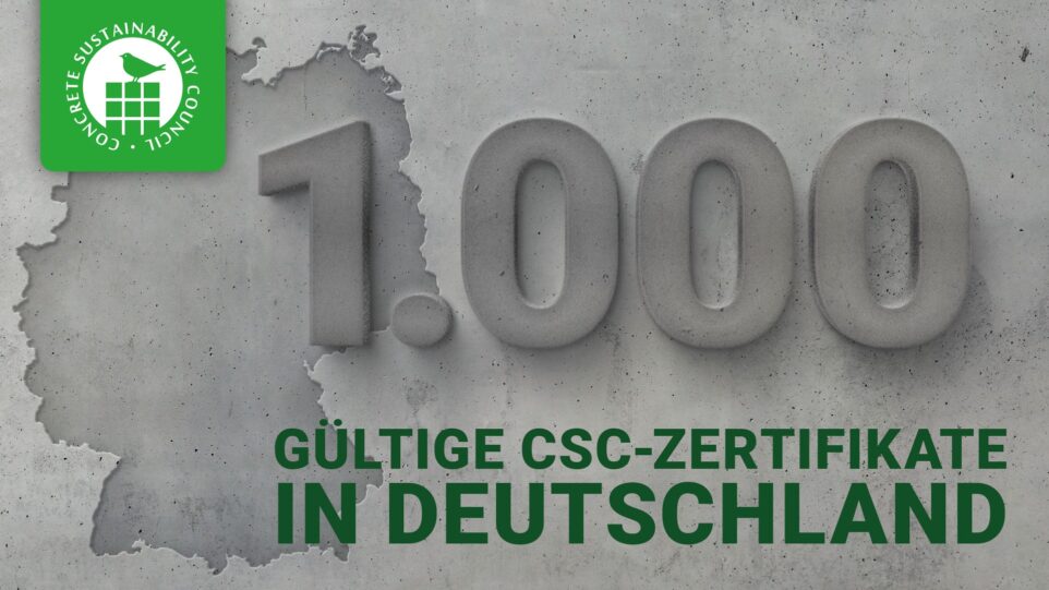 Zum ersten Mal hat die Anzahl der in Deutschland nach den Kriterien des Concrete Sustainability Council (CSC) zertifizierten Werke und Anlagen die Marke von 1.000 überschritten. Im Oktober 2025 waren 1.000 Anlagen im Besitz eines gültigen CSC-Zertifikats.