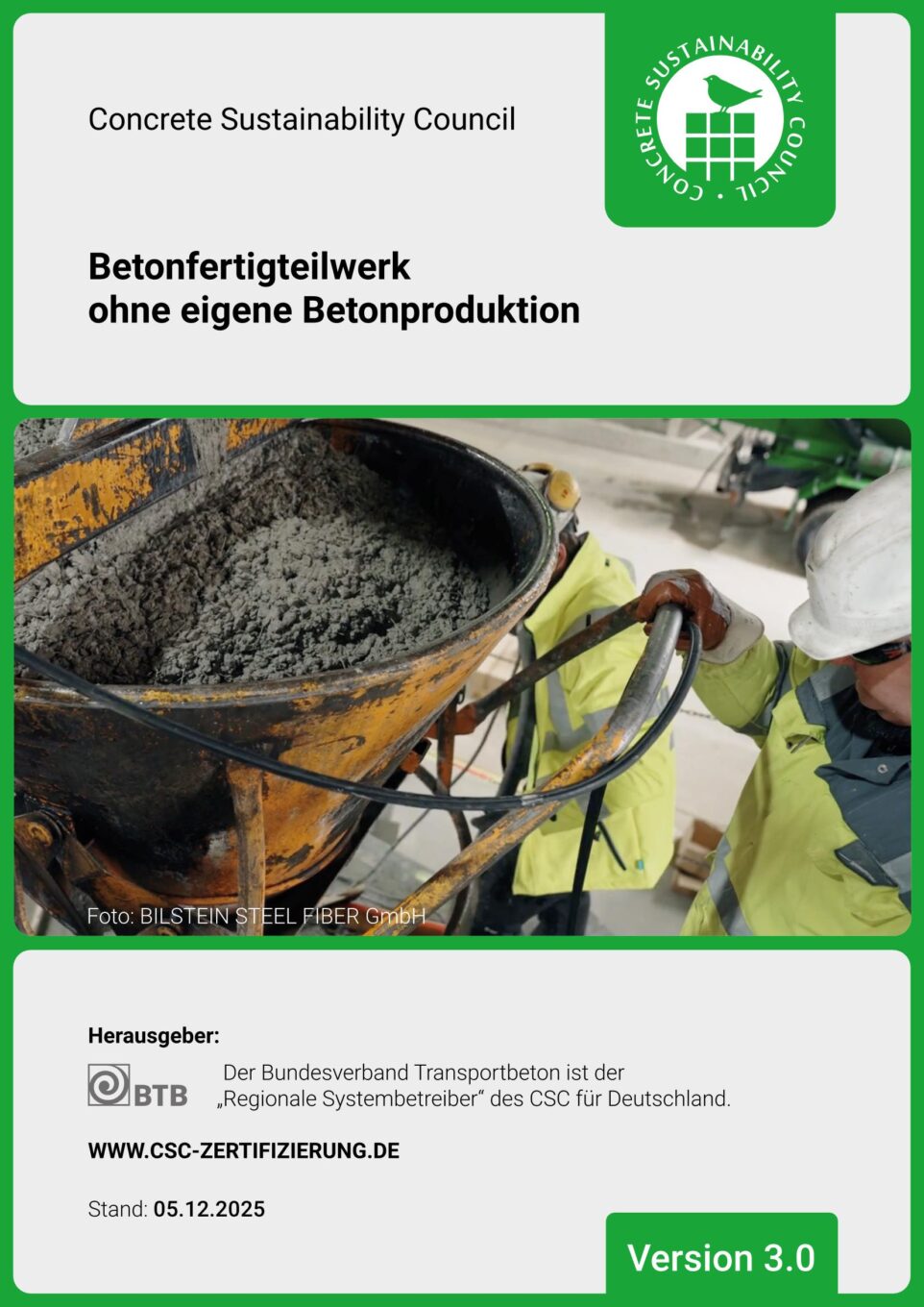 #09 Technisches Handbuch CSC (Version 3.0): Betonfertigteilhersteller ohne eigener FrischbetonproduktionIn by Andreas Tuan Phan5. Dezember 2025Betonfertigteilhersteller ohne eigener Frischbetonproduktion müssen dieses Handbuch verwenden. Herunterladen
